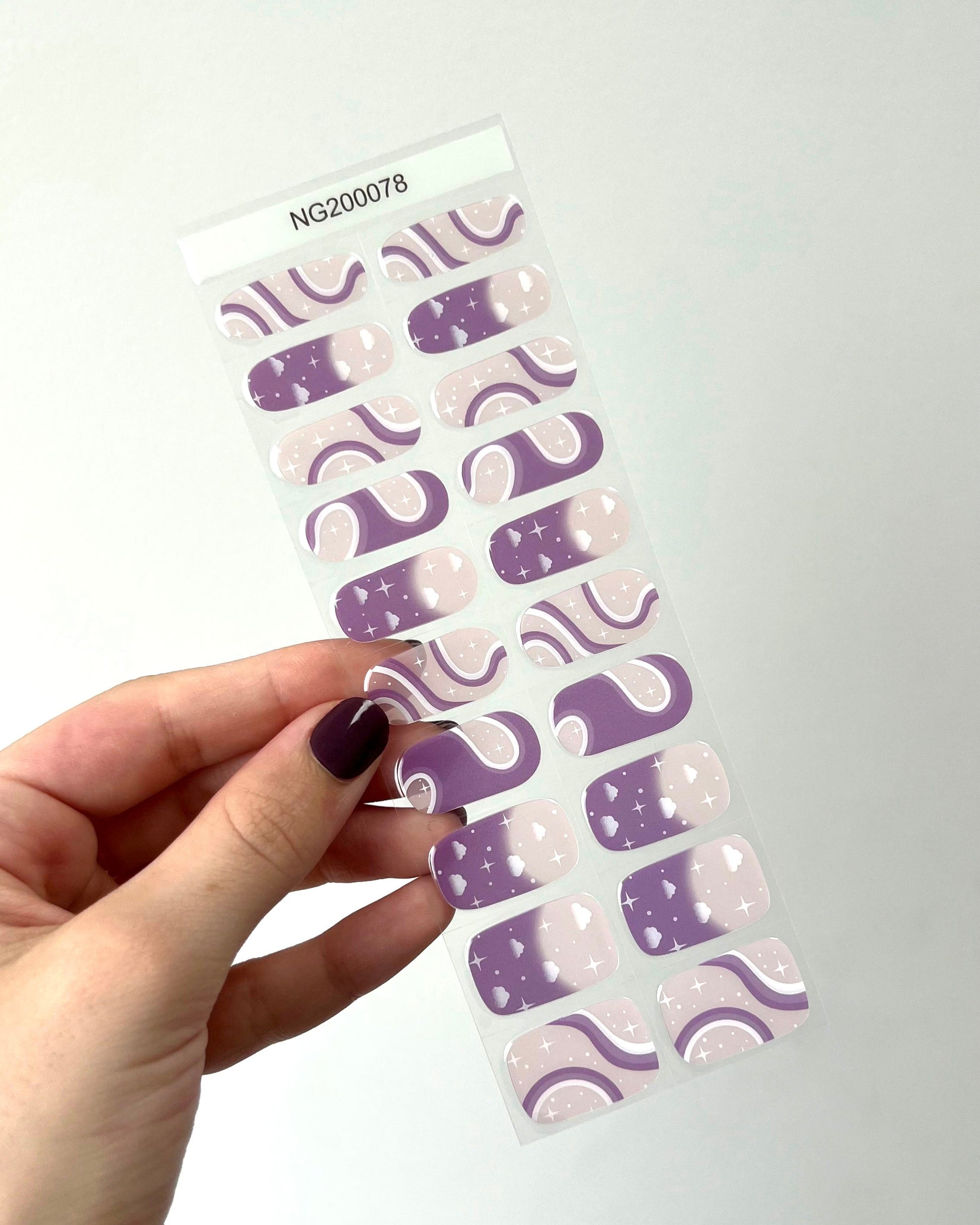 Choisis la taille de bande qui te correspond puis colle-la sur ton ongle.